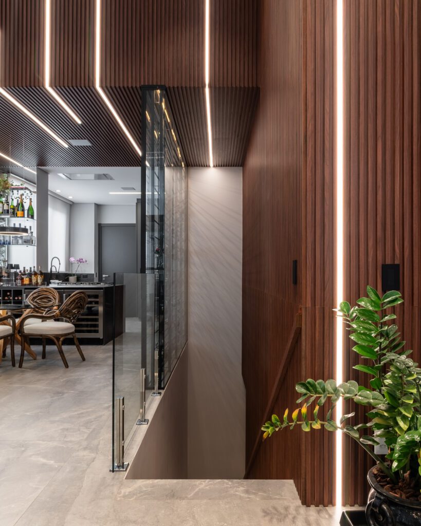 A automação completa do apartamento também merece destaque. Iluminação, áudio, vídeo, climatização e segurança são controlados por um único aplicativo, tornando o dia a dia muito mais prático e conectado.